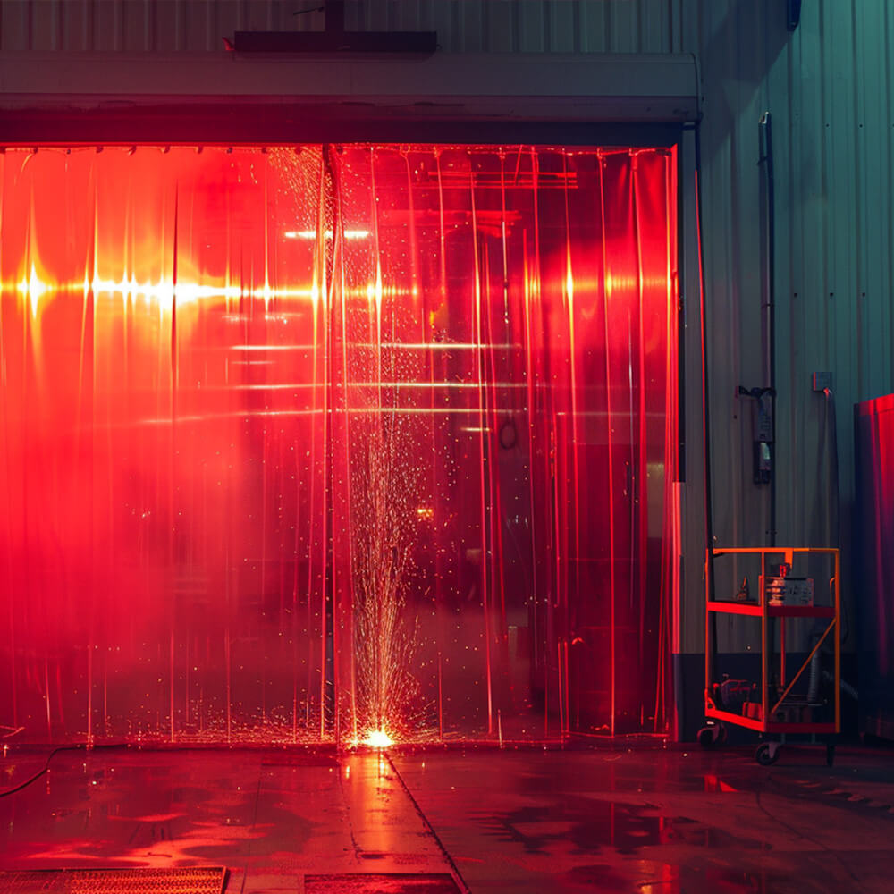 Průhledné červené PVC pruhy se používají především k označení oblastí, které jsou obzvláště nebezpečné nebo vyžadují jasnou signalizaci. Intenzivní barva zvyšuje viditelnost závěsu a zlepšuje tak bezpečnost pracovníků a obsluhy zařízení. Používají se také k označení nebezpečných prostor a bariér v automobilové dopravě.
